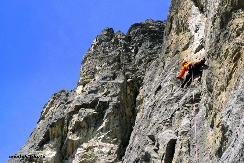 Finally got back on Astro Yam yesterday after failing miserably on it two years ago. The Great American Eagle – Jesse Huey – happened to be soaring through town on his way home from crushing the Slovak Direct on Denali, and probably didn’t know enough about the route to say no when I asked if he wanted to do it. Or maybe he’s just such a hard ass that he wasn’t in the least intimidated. I don’t know. What I do know is that Jesse possesses that rare combination of stoke, talent and humor that has and will continue to see him shred many of the world’s great climbs.