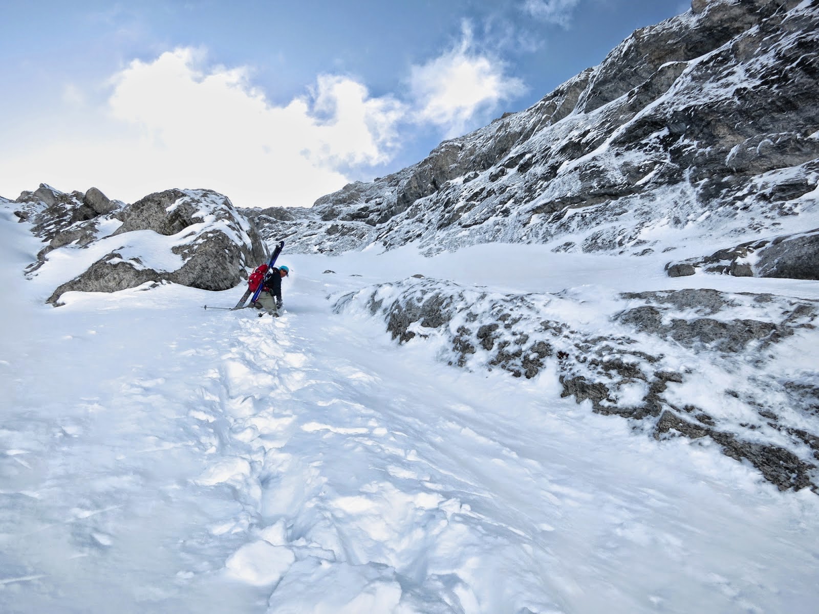But the real story for me on this day was the reminder of how important it is to have strong and motivated partners. I’ve been struggling this spring to push out of my comfort zone and I can attribute this to a few things: 1) last season’s mini-wing crash and 2) the recent deaths of some young friends – specifically Timy Dutton. Timy was a super talented and positive guy who died doing a relatively simple skydive. Our trip to Baffin Island in 2012 was a highlight for me and it’s hard not to think of one’s own mortality after something like this happens. So, with these thoughts in my head, I’ve been content not to push too hard this spring. When Gery and I topped out the face and emerged on the summit ridge, I was more than happy to stop there, pull the skins and ski down. But the wolverine wasn’t listening to my whining and pushed on towards the summit. In the end, that motivation was just what I needed.